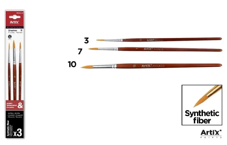 - 3 pędzle syntetyczne o różnych rozmiarach
