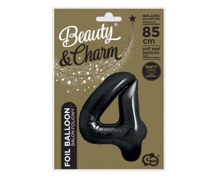 Balon foliowy B&C cyfra 4 matowa czarna 85cm - Godan