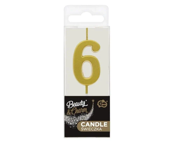 Świeczka-piker B&C w kształcie cyfry 6 - złoty metaliczny