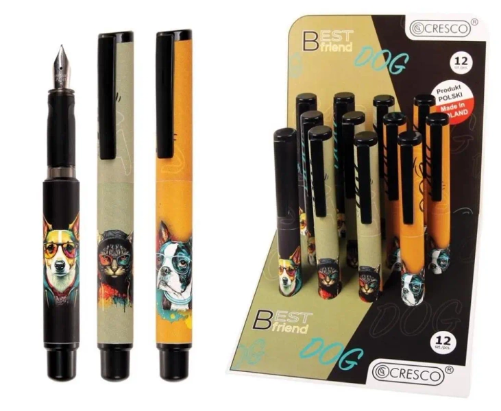GO PEN BEST FRIEND to najnowsza linia przyborów do pisania renomowanej marki CRESCO. To wieczne pióro cechuje się doskonałą stalówką wykonaną z wysokogatunkowej stali szlachetnej oraz końcówką irydową. Kolekcja ta została stworzona z myślą o najbardziej wymagających młodych użytkownikach, jakimi są dzieci i młodzież. Produkt oferowany jest w zestawie 12 sztuk z różnymi wzorami.