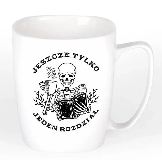 Jest późno, dochodzi trzecia w nocy. Oczy powoli się zamykają, na nosie pojawiła się kolejna rana od spadającej książki. Ale Ty nie ustępujesz! Jeszcze tylko jeden rozdział i idę spać... Brzmi znajomo? Jeśli jesteś zapalonym czytelnikiem oraz często spędzasz noce na czytaniu, to taka sytuacja jest Twoją codziennością. Kubek z nadrukiem JESZCZE TYLKO JEDEN ROZDZIAŁ idealnie nada się do Twoich nocnych wędrówek po świecie literatury. Będzie również doskonałym prezentem dla każdego mola książkowego, nocnego marka lub studenta, szczególnie w trakcie sesji egzaminacyjnej.