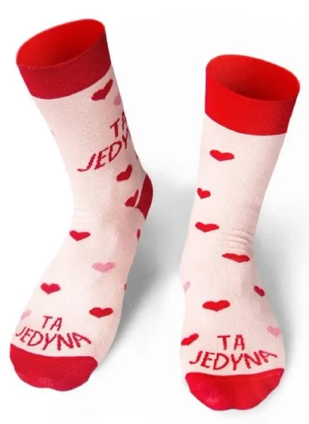 Kolorowe skarpetki dla dziewczyny TA JEDYNA zostały starannie uszyte w Polsce z najwyższej jakości bawełny czesanej. To doskonały prezent walentynkowy, który na pewno wywoła uśmiech na twarzy. Podaruj jej te zabawne skarpetki – idealne dla każdej damy.