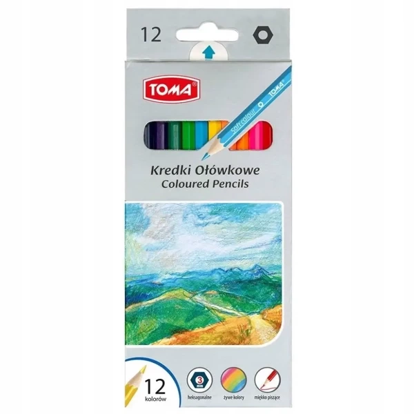 Kredki szkolne drewniane 12 kolorów - TOMA