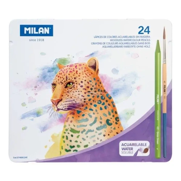 Kredki akwarelowe bezdrzewne 24 kol + pędzel MILAN