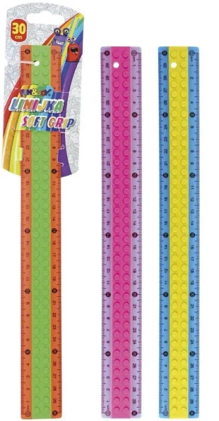 Znana ze swojej funkcjonalności i atrakcyjnego designu linijka SOFT GRIP o długości 30cm to idealne narzędzie do pracy i nauki. Wyróżnia się dwukolorowym, estetycznym wzorem nawiązującym do klocków.