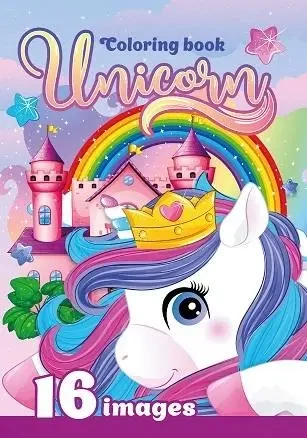 Oryginalna kolorowanka dla dzieci z magicznymi jednorożcami. W środku znajduje się 16 obrazków. Ciesz się z kolorowania. Wyprodukowana na Ukrainie.