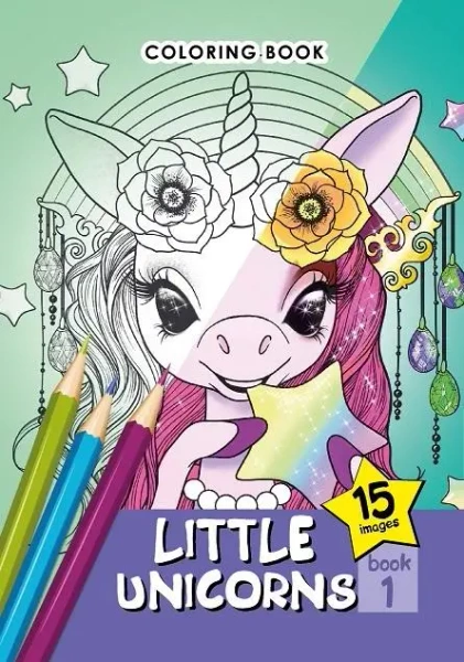 Kolorowanka dedykowana dla dzieci. W środku znajduje się 15 obrazków z jednorożcami gotowych do pokolorowania. Wyprodukowana na Ukrainie.