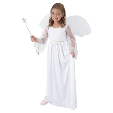 Ponadczasowa suknia Anioła, która przyozdobiona została dodatkowymi skrzydłami. Idealna do noszenia dla dzieci w wieku, której odpowiada rozmiar M - od 120 do 130 cm.