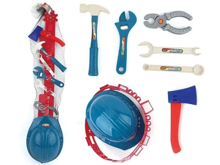 Prezentujemy zestaw narzędzi z pasem i kaskiem, który spełni oczekiwania każdego małego majsterkowicza. Cały zestaw zapakowany jest w praktyczną siatkę, co ułatwia przechowywanie i transport.