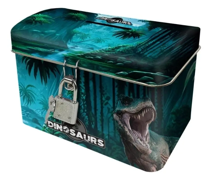 Skarbonka z kłódką kuferek Dinozaury DERFORM