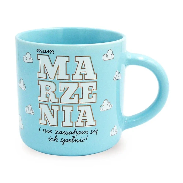 Kubek Pastelle Q 988 "Marzenia" to wyjątkowy produkt z serii kubków marki Kukartka. Charakteryzują się one delikatnym, eleganckim wyglądem oraz złotymi zdobieniami, a także inspirującymi tekstami.