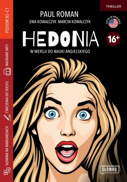 CZYTAJ – dzięki oryginalnemu angielskiemu tekstowi Hedonii przyswajasz nowe słówka i uczysz się ich zastosowania w zdaniach. Wciągająca fabuła sprawi, że nie będziesz mógł oderwać się od lektury, co zapewni regularność nauki. SŁUCHAJ – pobierz bezpłatne nagranie oryginalnego tekstu powieści, dostępne na stronie Wydawnictwa. Czytaj, jednocześnie słuchając nagrania, i utrwalaj wymowę.