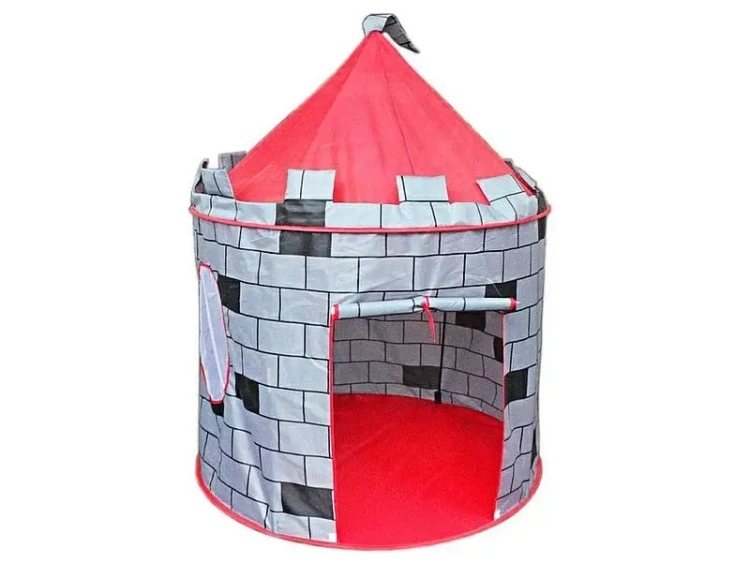 Automatycznie rozkładany namiot w kształcie wieży zamkowej o wysokości 125 cm i średnicy 110 cm. Produkt jest łatwy w montażu dzięki mechanizmowi automatycznego rozkładania.