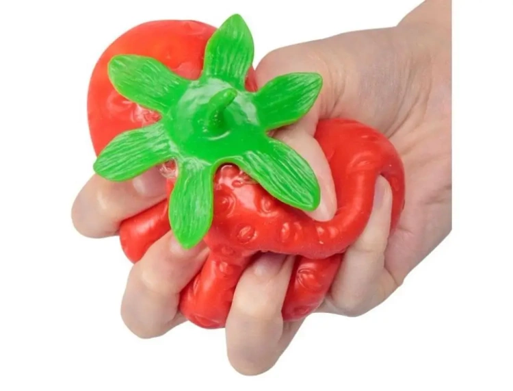 Antystresowa zabawka w postaci truskawki. Doskonale nadaje się do gniecenia i ściskania. Owoc jest bardzo przyjemny w dotyku i zapewnia uczucie satysfakcji w trakcie zabawy. Świetnie sprawdzi się w stresowych sytuacjach, gdyż ściskanie truskawki zapewni uczucie odprężenia i relaksu. Polecana dla dzieci i dorosłych wrażliwych na kłopotliwe sytuacje. Stanowi ciekawą alternatywę tradycyjnych piłeczek antystresowych. Przyniesie radość zarówno dziecku, jak i osobie dorosłej. Wypełniona substancją o żelowej konsystencji. Wypróbuj i zapomnij o stresie. Kolory do wyboru: - czerwony - różowy Wielkość truskawki, to 9 cm