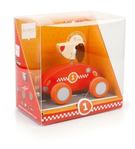 Piesek Cesar jest wykonany z drewna i z radością towarzyszy najmłodszym podczas ich spacerowych wypraw. To uroczy drewniany piesek, który entuzjastycznie kiwa głową, podążając za maluchem. Wykonane z miękkiego materiału uszy pupila dodają mu jeszcze więcej uroku.