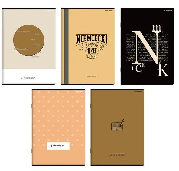 Do wyboru aż 5 różnych okładek dla każdego przedmiotu, aby każdy mógł znaleźć coś odpowiedniego dla siebie. Wytrzymały, zszywany grzbiet łatwo się otwiera.
