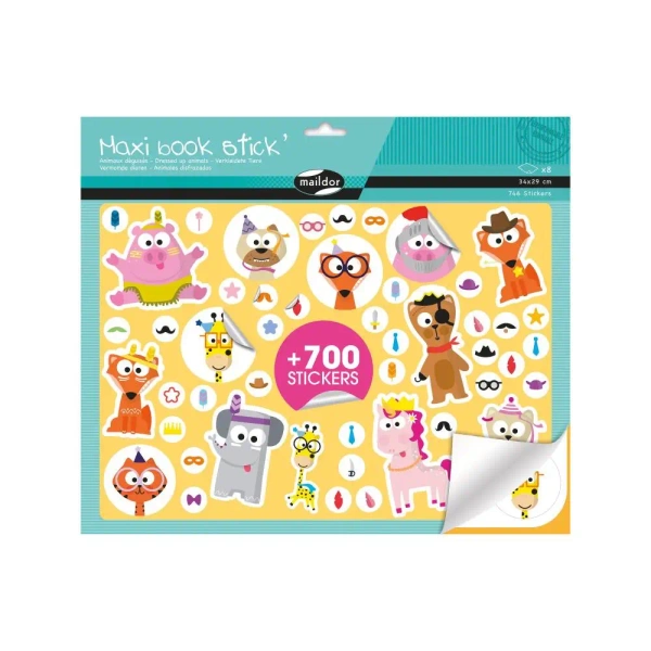 "Maxi Book Stick" "Przebrane zwierzęta" to wyjątkowy zestaw, który przeniesie Twoje dziecko do świata pełnego fantazji. Zawiera on aż ponad 700 naklejek, które znajdują się na ośmiu kreatywnych planszach.
