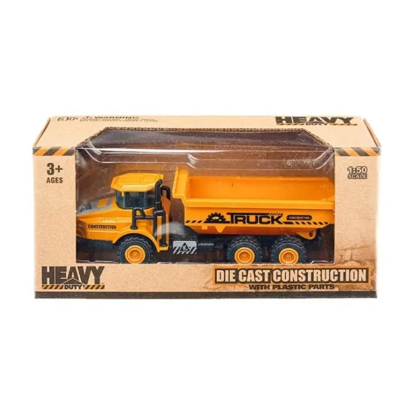 Pojazd budowlany, wywrotka, wykonany z efektownego połączenia metalu i tworzywa sztucznego. Model ten zestawiono w skali 1:50, co nadaje mu realistyczny i szczegółowy wygląd. Wytworność metalu z funkcjonalnością plastiku Pomysłowe połączenie materiałów, z których zbudowany jest pojazd, gwarantuje zarówno jego trwałość, jak i lekkość potrzebną do łatwego rozgrywania scen budowlanych. Konstrukcja wzbogacona plastikowymi elementami sprawia, że zabawka jest bezpieczna dla dzieci i jest odporna na przypadkowe uszkodzenia. Precyzyjne dopracowanie detali Dzięki wykonaniu w skali 1:50, uczestnicy zabawy mogą cieszyć się mnóstwem realistycznych detalów i funkcji. Szczegółowe malowanie i staranna konstrukcja dodają zabawie jeszcze więcej autentyczności i wciągają dzieci w fascynujący świat budowy.EAN: 5905422115132