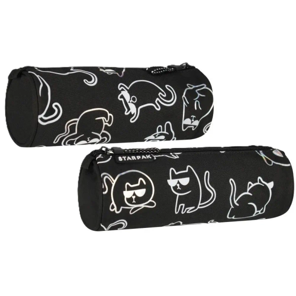 Oferowany model ozdobiony jest uroczymi grafikami w holograficzne kotki, co z pewnością przypadnie do gustu młodym użytkownikom. Wnętrze piórnika jest wyposażone w mocną podszewkę, co dodatkowo podnosi jego walory użytkowe. Produkt należy do serii STARPAK przeznaczonej dla młodzieży.