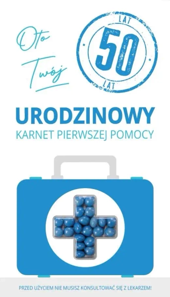 Świętuj 50 urodziny w wyjątkowy sposób dzięki naszemu karnetowi. W zestawie znajduje się koperta oraz humorystyczny dodatek w środku, który na pewno wywoła uśmiech na twarzy jubilata.