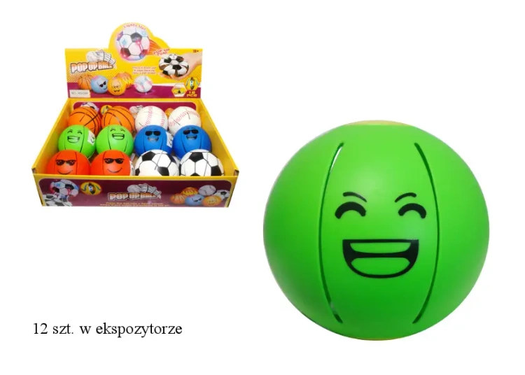 Kolorowa piłka, która zmienia kształt. Wciśnij ją, a ona zmieni się w latający spodek, następnie powróci do swojego pierwotnego kształtu. Kiedy odbije się od podłoża zacznie świecić kolorowymi światełkami. Piłki są w dwóch wzorach (imitującymi piłki do kosza, do baseballa i piłki nożnej oraz piłki minki). Produkt działa na baterie typu AG13. Baterie znajdują się w zabawce. Produkt występuje w kilku wersjach kolorystycznych, wybierany losowo. Cena dotyczy jednej sztuki. Produkt dla dzieci od 3 l