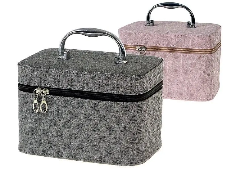 Ten kompaktowy kuferek o wymiarach 21x14x13 cm z łatwością pomieści Twoje codzienne akcesoria, a dzięki wbudowanemu lusterku zawsze będziesz mieć pod ręką pomoc przy szybkiej poprawce makijażu.