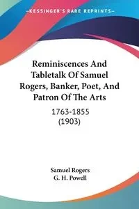 Reminiscences And Tabletalk Of Samuel Rogers, Banker, Poet, And Patron Of The Arts: 1763-1855 (1903) is a book that provides a fascinating glimpse into the life and times of Samuel Rogers, a prominent banker, poet, and patron of the arts who lived from 1763 to 1855. This book is a collection of Rogers' personal reminiscences and table talk, which were recorded by his friends and acquaintances over the course of his long and illustrious life.Through these reminiscences and table talk, readers are able to gain a deeper understanding of Rogers' character, his interests, and his contributions to the arts and culture of his time. The book also provides a unique insight into the social and cultural milieu of 18th and 19th century England, as seen through the eyes of one of its most prominent figures.Overall, Reminiscences And Tabletalk Of Samuel Rogers, Banker, Poet, And Patron Of The Arts: 1763-1855 (1903) is a valuable historical document that offers a wealth of information and insights into the life and times of one of England's most important cultural figures.Collected From The Original Memoirs Of Alexander Dyce And William Sharpe, With Introduction And Index.This scarce antiquarian book is a facsimile reprint of the old original and may contain some imperfections such as library marks and notations. Because we believe this work is culturally important, we have made it available as part of our commitment for protecting, preserving, and promoting the world's literature in affordable, high quality, modern editions, that are true to their original work.