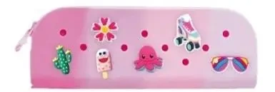 Odkryj silikonowy piórnik w energetycznym różowym kolorze, wyposażony w wyjmowane, kolorowe wpinki, które zapewnią Twoim przyborom szkolnym unikalny wygląd. Dzięki sześciu wpinkom, możesz w łatwy i kreatywny sposób dekorować piórnik według własnych upodobań, a także wymieniać się nimi z innymi.
