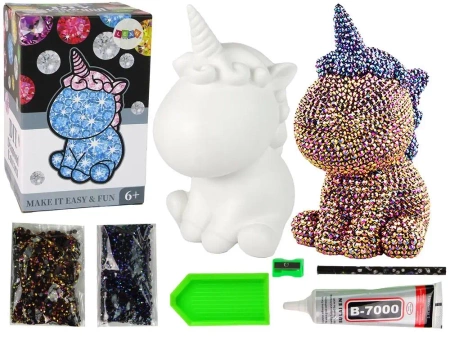 Zabawa przy wykorzystaniu tego zestawu pozwala na ćwiczenie cierpliwości, precyzji oraz umiejętności manualnych. Zawiera specjalną podkładkę, na której umieszcza się kryształki, oraz dwa kolory kryształków, które można dowolnie komponować na figurce jednorożca. Specjalny klej sprawia, że powierzchnia figurki staje się klejąca, co pozwala na łatwe przytwierdzanie diamencików. Układając je jeden po drugim, można uzyskać piękną dekorację, która ozdobi domowy pokój!