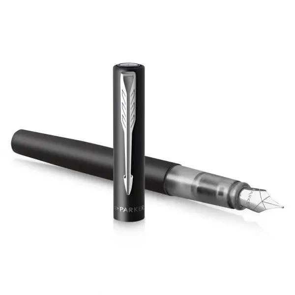Pióro Wieczne Vector XL marki Parker to perfekcyjne połączenie elegancji i funkcjonalności. Metaliczny czarny lakier pokrywa mosiężny korpus z chromowanymi akcentami, dodając mu nowoczesnego uroku.