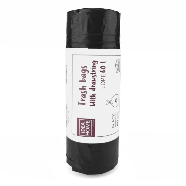 Worki z taśmą ściągającą 60l czarne 40szt - IDEA