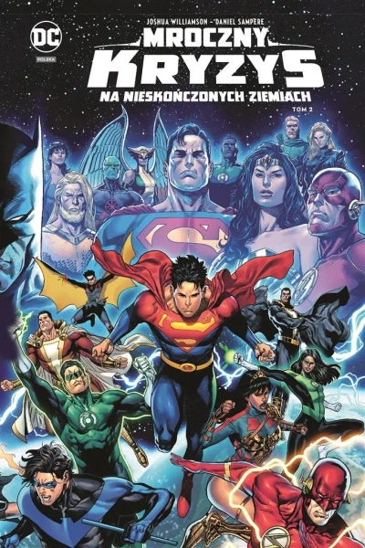 Bohaterowie stopniowo odkrywają machinacje Pariasa, ale Wielka Ciemność nadal rzuca cień na multiwersum - chce sobie podporządkować i przedefiniować wszystkie rzeczywistości. Deathstroke wprowadza w życie plan na Ziemi-0. Zamierza raz na zawsze zlikwidować nowe pokolenie bohaterów, podczas gdy młodzi herosi pod przywództwem Jona Kenta i Nightwinga jednoczą się, próbując dorównać osiągnięciom największych bohaterów, jakich kiedykolwiek znał świat. W drugim tomie "Mrocznego Kryzysu na Nieskończonych Ziemiach" następuje kulminacja wydarzeń, które rozpoczęły się w "Nieskończonej Granicy" i "Międzywymiarowej Lidze Sprawiedliwości". Scenarzysta Joshua Williamson kontynuuje swoje wielkie dzieło, a towarzyszy mu niezwykle utalentowany rysownik Daniel Sampere. Na stronach tego albumu odsłaniają nowy Wielki Kryzys, który zgodnie z tradycją tak przełomowych historii jak "Kryzys Na Nieskończonych Ziemiach" i "Flashpoint. Punkt Krytyczny" wstrząśnie uniwersum DC. Album zawiera materiały opublikowane pierwotnie w amerykańskich zeszytach: "Crisis on Infinite Earths" #4-7, "The Flash #786", "Dark Crisis: Worlds Without a Justice League - Wonder Woman" #1, "Dark Crisis: Worlds Without a Justice League - Green Arrow" #1, "Dark Crisis: Worlds Without a Justice League - Batman" #1, "Dark Crisis: The Deadly Green" #1, "Dark Crisis: The Dark Army" #1, "Dark Crisis: War Zone" #1, "Dark Crisis: Big Bang" #1.