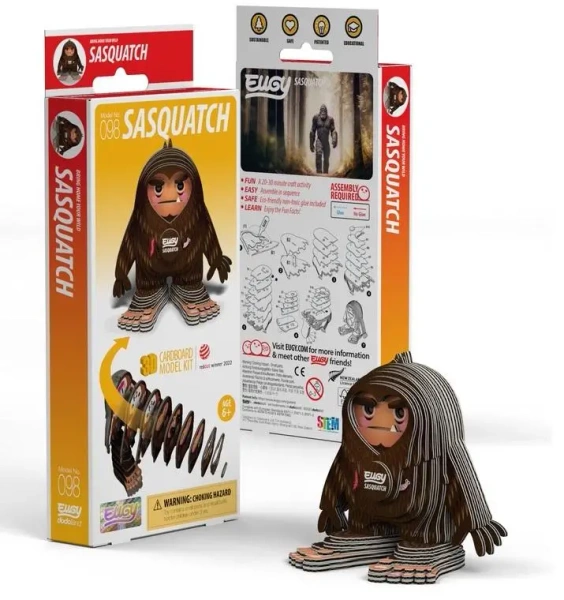 Eugy to innowacyjna układanka stworzona w Nowej Zelandii. Wykorzystuje przyjazny dla środowiska karton z recyklingu oraz farbę na bazie ryżu. Zestaw zawiera 31 ponumerowanych elementów, oczka, nietoksyczny klej oraz klarowną instrukcję, umożliwiającą złożenie figurki Wielkiej Stopy.