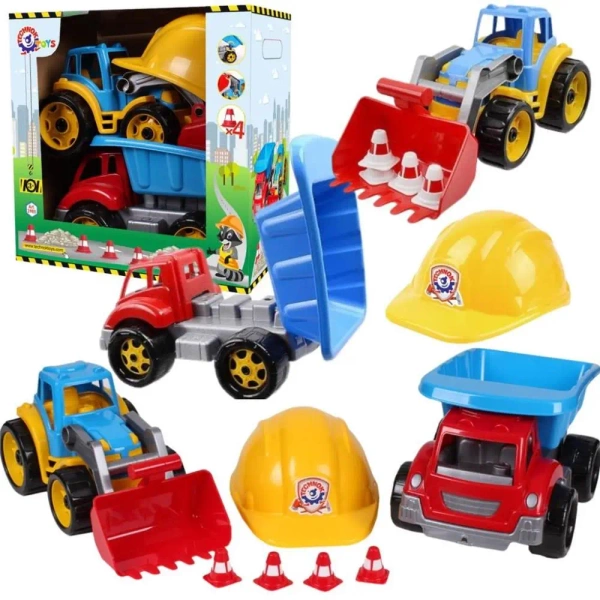 Zestaw zawiera dwa pojazdy budowlane - koparkę i wywrotkę, które wyróżniają się ruchomymi elementami. Ruchoma łyżka koparki i podnoszona wywrotka wywołają entuzjazm u małego budowniczego, zapewniając długie godziny niezapomnianej zabawy. Pojazdy posiadają podstawowe detale, charakterystyczne dla prawdziwych maszyn budowlanych.
