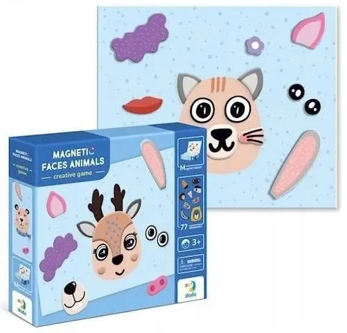 Wystarczy otworzyć pudełko, aby zanurzyć się w kolorowym świecie, w którym 77 magnetycznych elementów czeka na tworzenie unikalnych kompozycji. Gra oferuje różnorodne elementy, takie jak oczy, nosy, usta oraz dodatkowe akcesoria. Dzieci mogą samodzielnie tworzyć wyjątkowe twarze zwierząt, rozwijając przy tym zdolności manualne i pomysłowość.