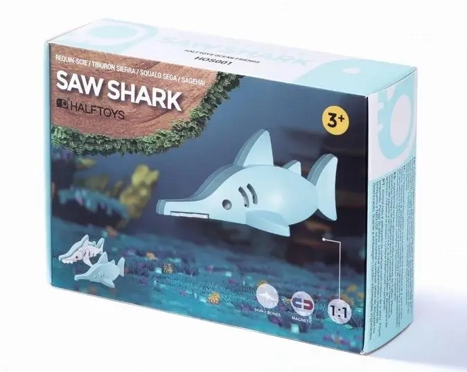 Pod efektowną magnetyczną osłoną ryby piły kryje się niezwykła tajemnica - trójwymiarowa układanka, która odkrywa realistyczny szkielet. Każdy element tej układanki doskonale do siebie pasuje, tworząc wewnętrzny świat rekina pełen piękna i precyzji. To wyjątkowe doświadczenie pozwala dzieciom w praktyczny sposób poznać budowę i anatomię zwierząt.