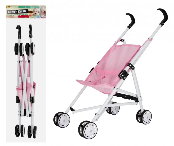 Wózek parasolka dla lalek metalowy różowy - MEGA CREATIVE