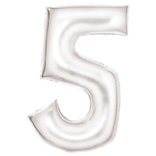 Balon foliowy cyfra 5 satynowa biała 86cm - Amscan