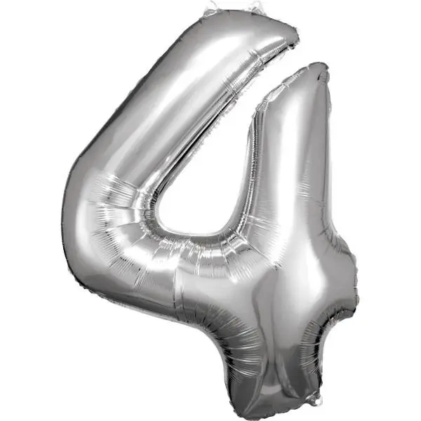 Balon foliowy cyfra 4 srebrna 65x86cm - Amscan