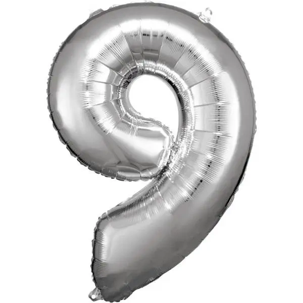 Balon foliowy cyfra 9 srebrna 60x86cm - Amscan