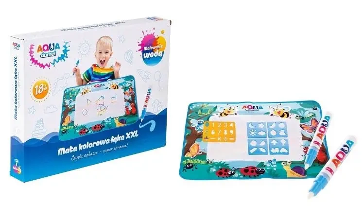 Odkryj malownicze krajobrazy łąki wraz z jej urokliwymi mieszkańcami! Ten ogromny zestaw do kreatywnej zabawy oferuje niezliczone godziny radości. W skład zestawu wchodzi duża mata do malowania w siedmiu kolorach, dwa mazaki na wodę oraz różnorodne szablony. Aby rozpocząć zabawę, wystarczy napełnić mazaki wodą i malować. Gdy mata wyschnie, wcześniej narysowane obrazy znikają jak za dotknięciem czarodziejskiej różdżki!