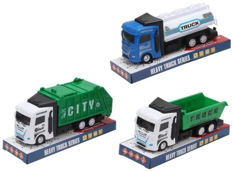 - Różnorodność pojazdów – zestaw obejmuje śmieciarkę, wywrotkę i cysternę.