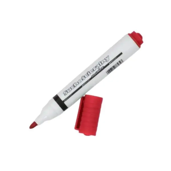 Oferujemy czerwony marker suchościeralny w zestawie liczącym 12 sztuk. Ten marker jest doskonałym rozwiązaniem do codziennego użytku w biurze, szkole czy domu. Dzięki niej bez problemu zaznaczysz najważniejsze informacje na tablicy suchościeralnej.