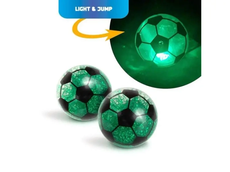 Piłka nożna Light & Jump to niezwykła zabawka, która sprawi, że każdy skok rozświetli się wyjątkowym blaskiem. Wewnątrz piłki można zobaczyć wirujący brokat, który przypomina trawę, tworząc niesamowity efekt zielono-niebieskiego migającego światła.