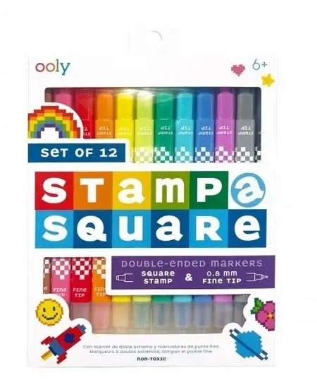Dwustronne cienkopisy, z pieczątkami w kształcie pikseli w zestawie 12 kolorów. Każdy marker ma kwadratową końcówkę stempla oraz cienką końcówkę o grubości 0,8 mm. Idealne do tworzenia list, i grafiki pikselowej.