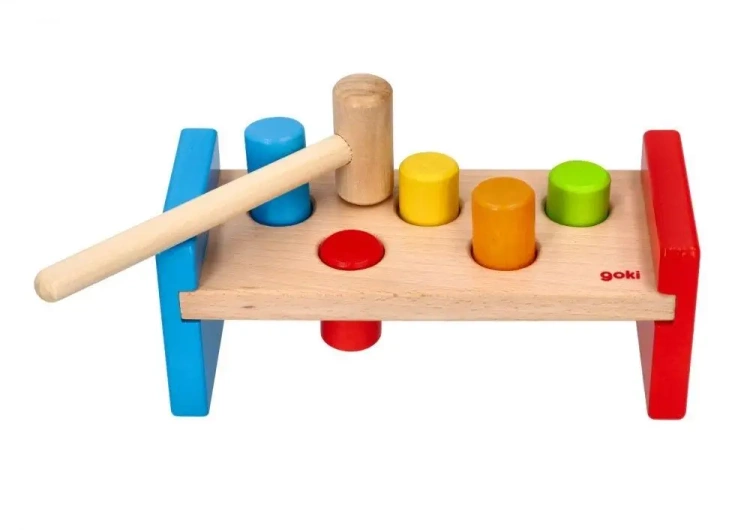 Interaktywna i edukacyjna zabawka dla dzieci - drewniana ławeczka z młotkiem od Goki