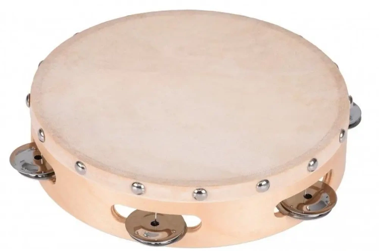 Tamburyn z naturalnej skóry z 5 talerzykami - Idealny dla Młodych Perkusistów