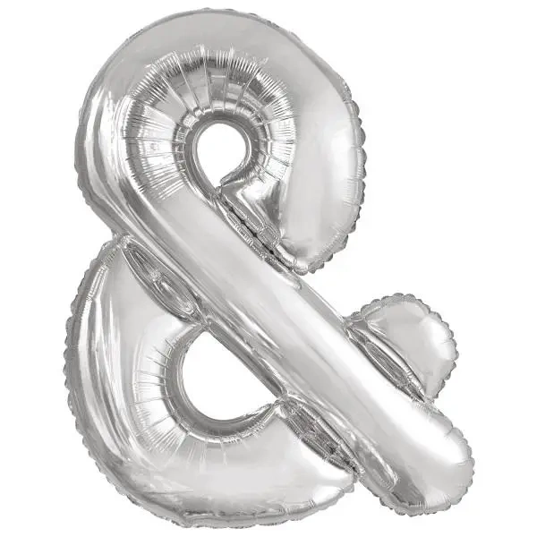 Balon foliowy o kształcie znaku "&" w kolorze srebrnym, o wymiarach 71 cm x 86 cm, to idealna dekoracja na każdą okazję.