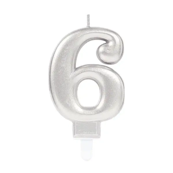 Cyferkowa Świeczka "6" z Kolekcji Sparkling Celebrations, Srebrna
