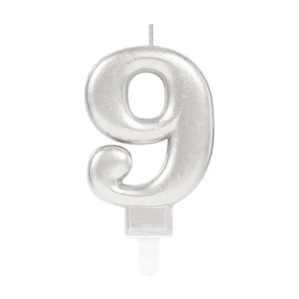 Świeczka cyferka 9 Sparkling Celebrations srebrna - Amscan